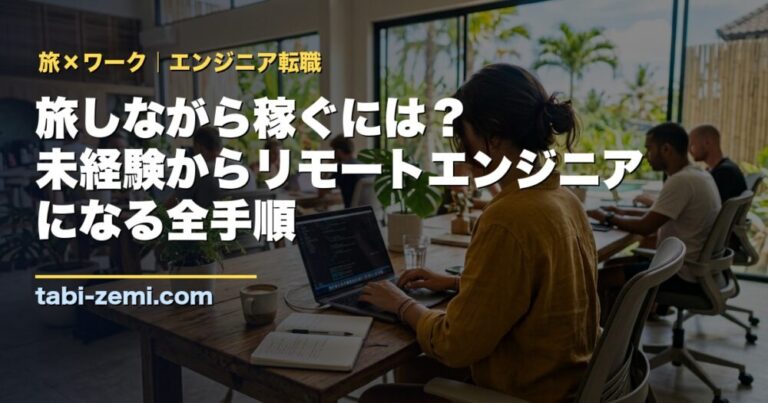 旅しながら働くリモートエンジニアという選択肢を徹底解説。未経験・文系でもエンジニア転職が現実的な理由、学習ロードマップ、RareTECHの無料カウンセリング活用法まで紹介します。
