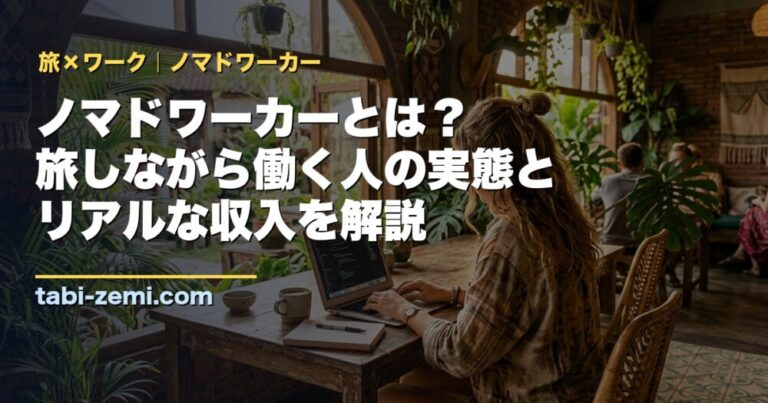 ノマドワーカーとは何か、どんな生活をしているか、収入の実態まで詳しく解説。旅しながら働くライフスタイルに興味がある方向けに、なり方と向いている人の特徴も紹介します。
