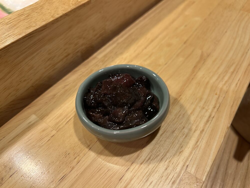 見た目は黒っぽく少しインパクトがありますが、ひと口食べると濃厚な旨みとほどよい塩気が広がる、大人の味わいです。