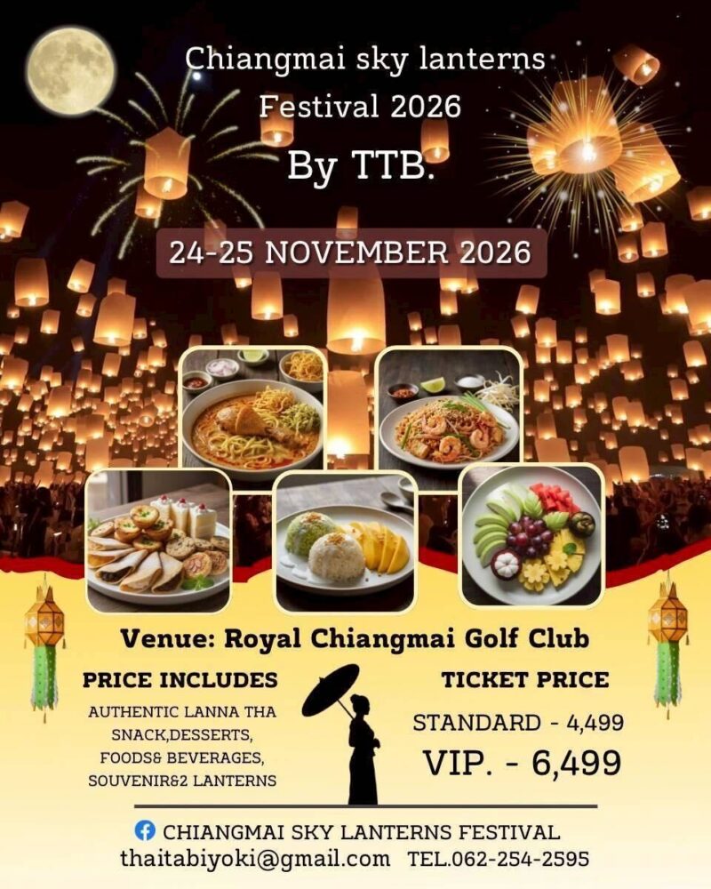 正式名称は「Chiang Mai CAD Yi Peng Khomloy Sky Lantern Festival 2026」。
