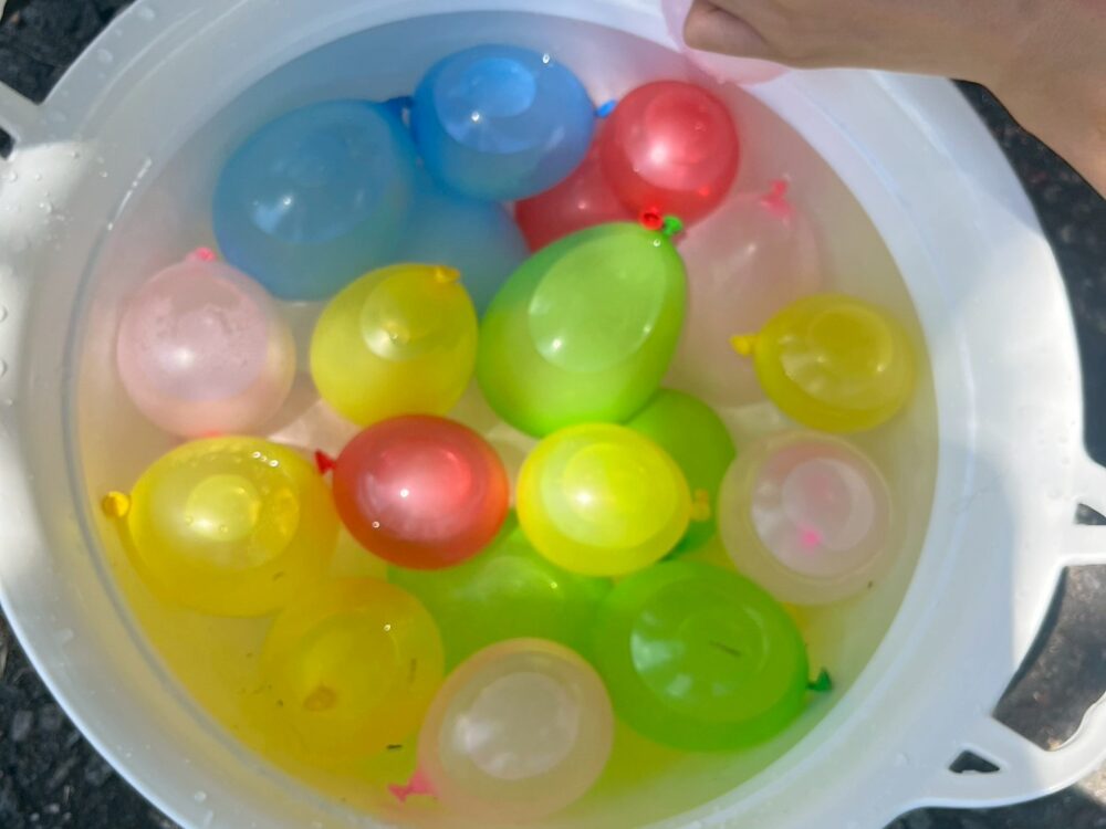 水風船や虫取り網などの道具がそろい、子どもたちが自由に遊びを創り出します。