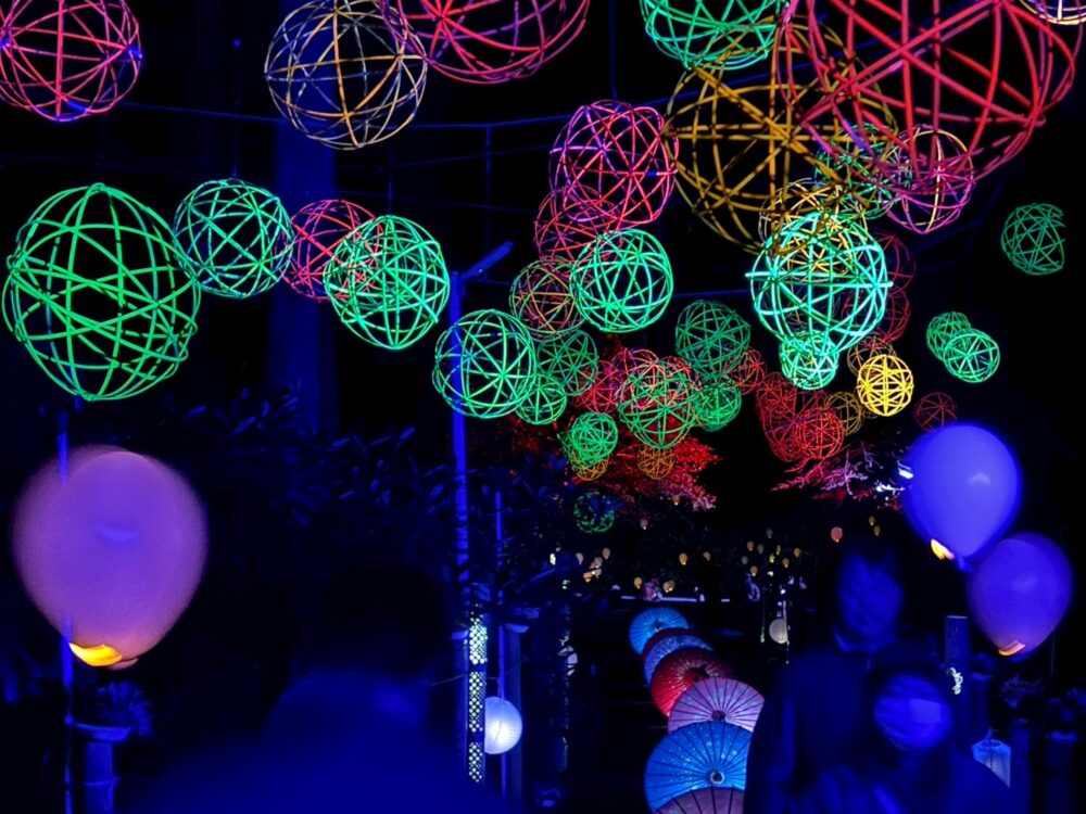 秋に開催される紅葉祭では、尾ノ内渓谷でダリアのライトアップを実施。