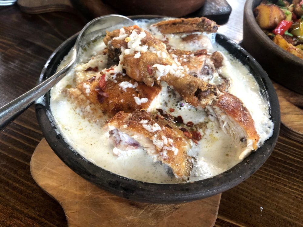 ジョージアで食べられるシュクメルリは大きく分けて2つのタイプがあり、お店によって置いている物が違います。