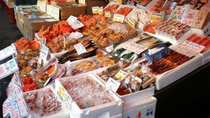 北海道を代表する港町らしく、多種多様な海産物が並びます。
