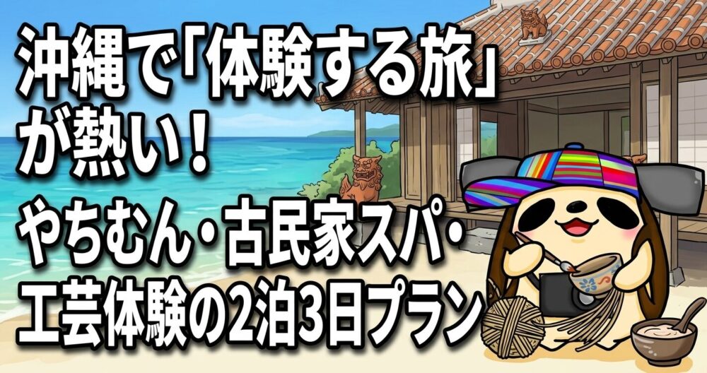 ビーチリゾートとしての沖縄は昔からの人気ですが、2026年は「五感で感じる旅」「手を動かして学ぶ旅」が国内旅行の大きなトレンドになっています。リモートワークの普及で旅の目的が多様化し、「ただ休む」だけでなく「自分を豊かにする体験」を求める旅行者が増えてきたことが背景にあります。