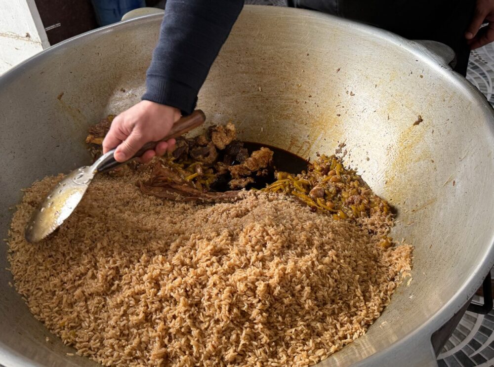 使う鍋は「カザン」と呼ばれる大きな鉄製の鍋で、米一粒一粒に肉と野菜の旨みが染み込んでいます。