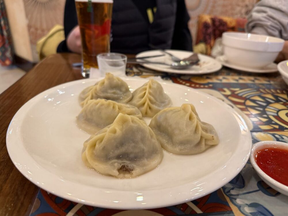 マンティは羊肉と玉ねぎを包んだ大きめの蒸し餃子で、皮はもっちりと厚め。